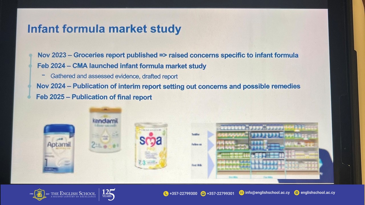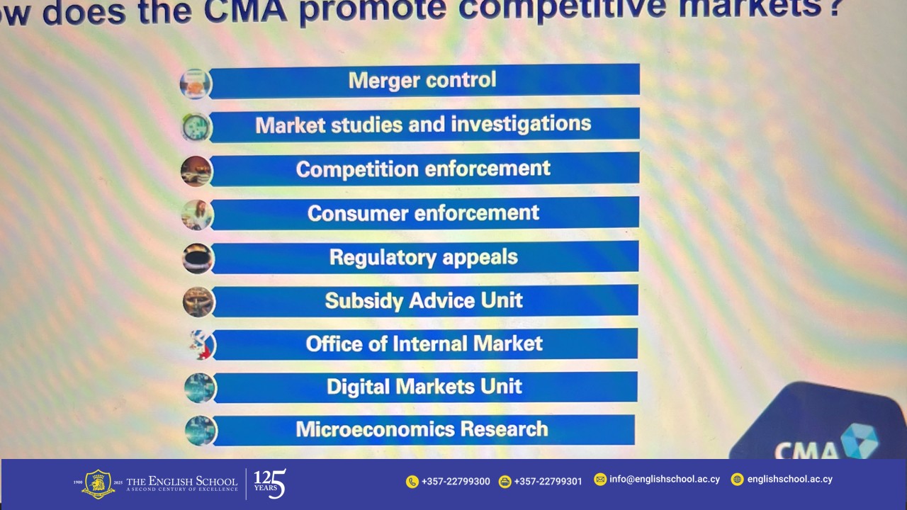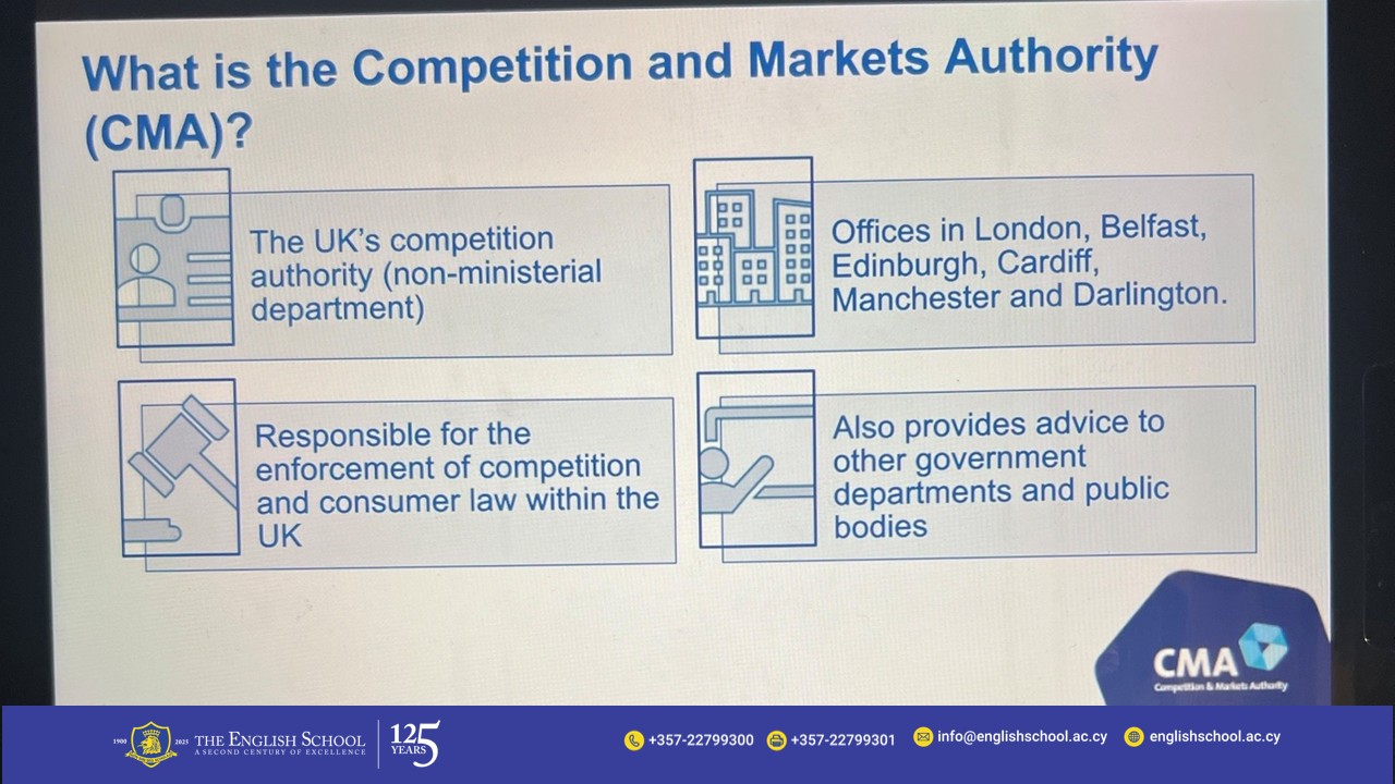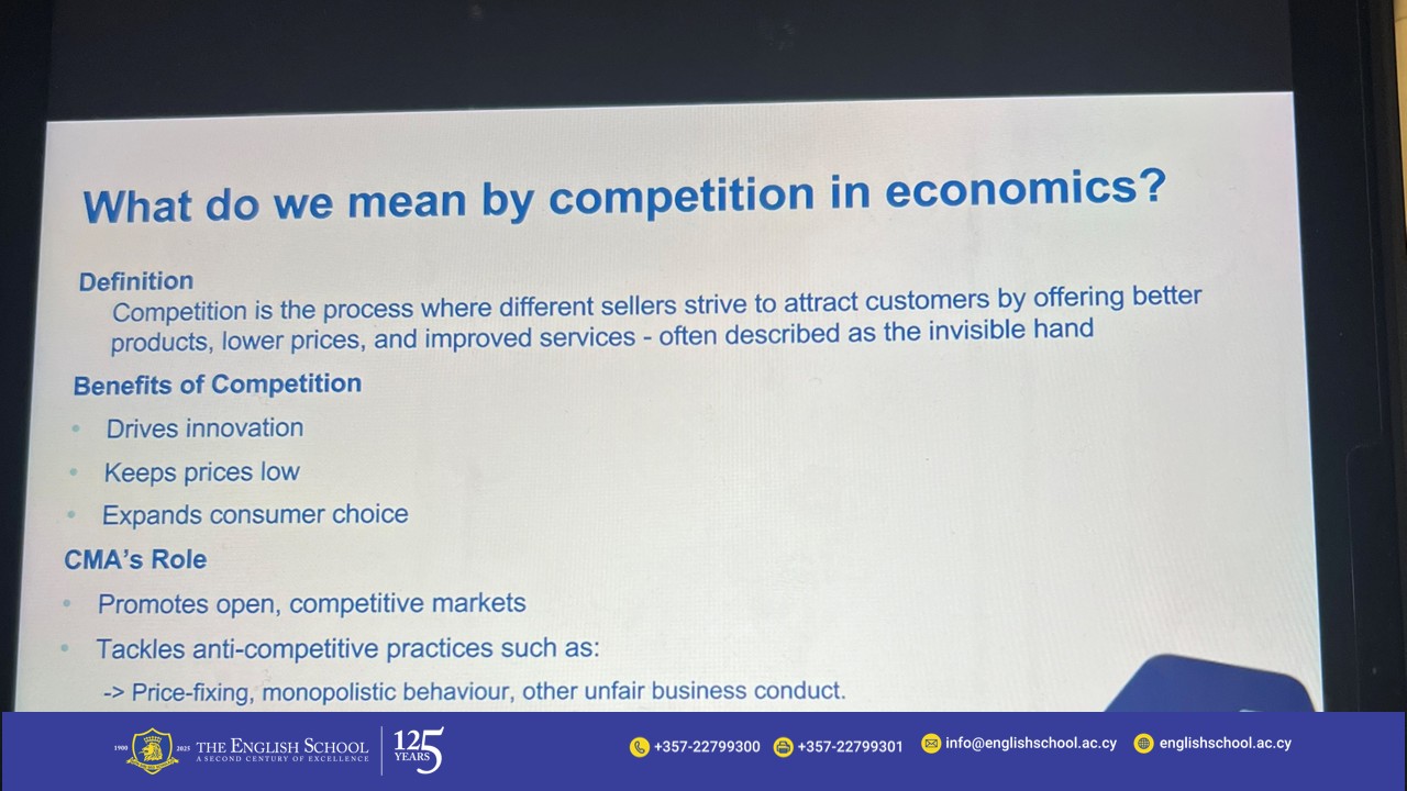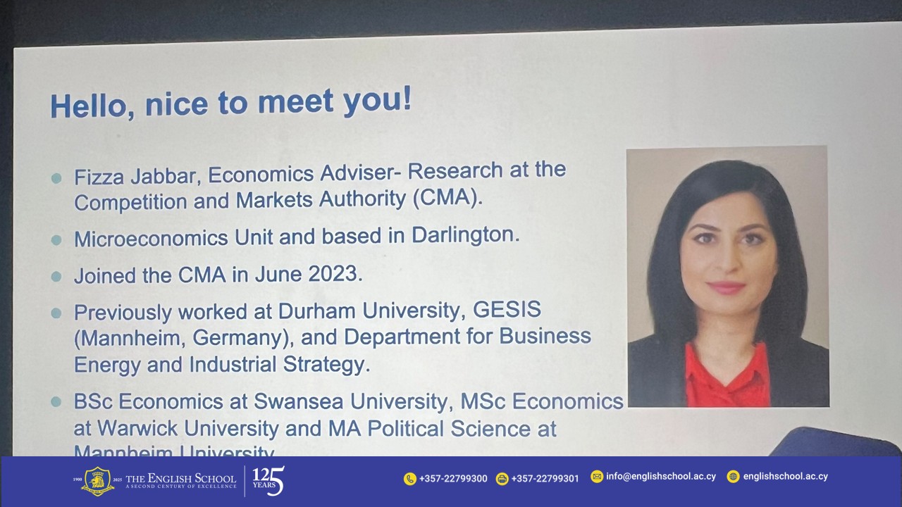 On the 13th November 2025, The English School had the pleasure of welcoming Ms Jabbar, Economic Adviser at the UK Competition and Markets Authority (CMA), for a highly engaging and thought-provoking presentation on the role of competition policy in supporting a dynamic economy.