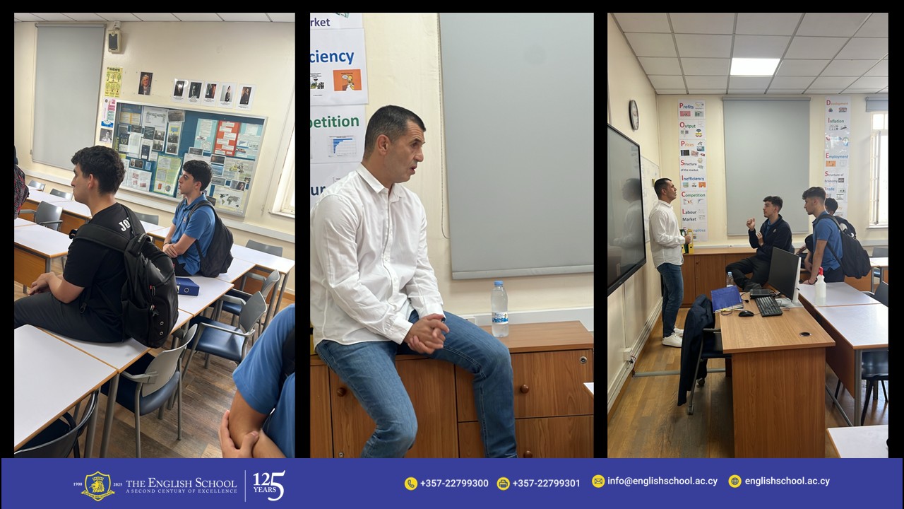 Mr Maroudias, a Chartered Accountant working in the Cyprus finance sector based on UK law, spoke to our Year 6 and 7 Economics students about how political decisions and economic realities are deeply interconnected. Drawing on his professional experience, he explained how laws, regulations, and government policy directly shape financial markets, banking stability, and business confidence.