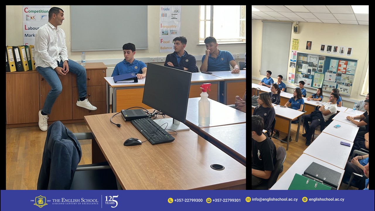 On Friday 7th November, the Economics Society had the pleasure of welcoming back English School alumnus Mr Petros Maroudias for an inspirational session titled “Politics and Economics: Two Sides of the Same Coin.”